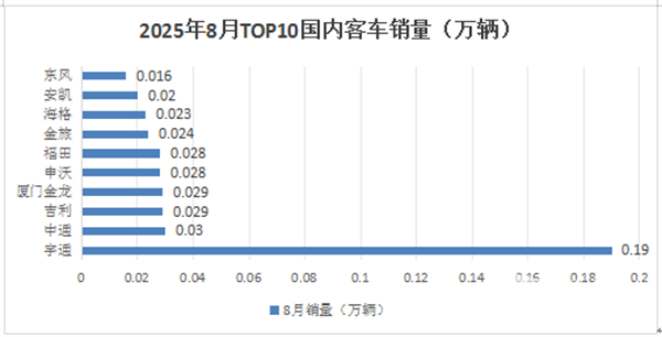 1、根据中国汽车流通协会提供的终端上牌数据,2025年8月国内大中型客车销量TOP10:
