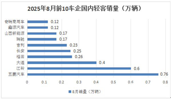 2、根据中国汽车流通协会提供的终端上牌数据,2025年8月国内轻客销量TOP10: