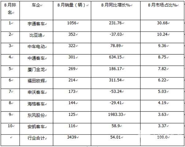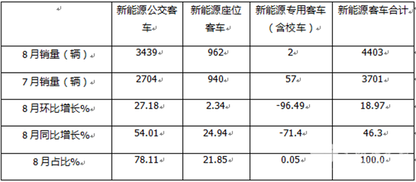 正是上述几个方面因素的叠加作用,导致今年8月新能源公交客车市场呈现同环比双增的良好发展态势。