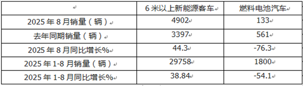 那么2025年8月及前8月燃料电池汽车及其中的燃料电池客车市场都有哪些特点?现进行扼要分析。