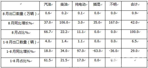 总之,无论是今年8月还是1-8月,汽油客车出口均为最多、柴油占据均为第二、纯电动占比均为第三;从同比增速看,单月柴油领涨、累计纯电动领涨。