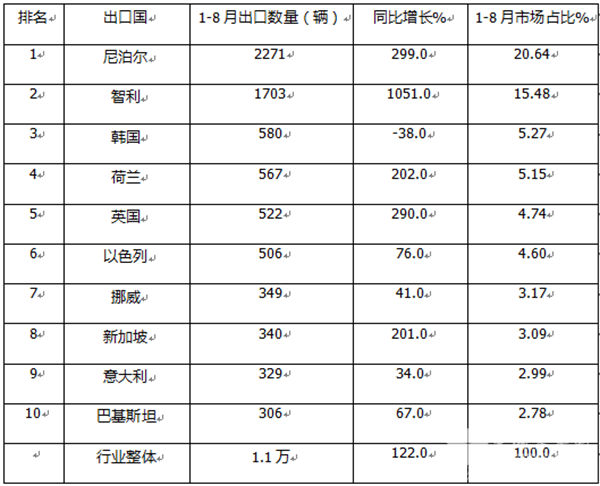 ---累计出口尼泊尔2271两,也是唯一累销超2000辆的国家,居第一,同比暴涨299%,市场占比20.64%;