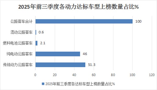 随着“双碳”战略的持续推进及我国交通领域向低碳、绿色转型的发展大势,加之各地公共交通领域全面电动化进程的加速,新能源公路客车必然不断渗透到整体公路客车市场。因此,2025年前三季度公路客车达标车型公告中上榜的传动公路客车占比同比大幅度减少完全是必然的。