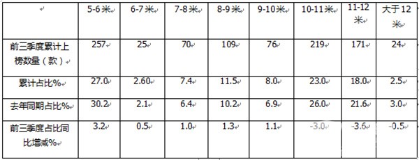 ---10-11米段和11-12米段大型公路客车分别累计上榜219款和171款,分别居第二、第三。