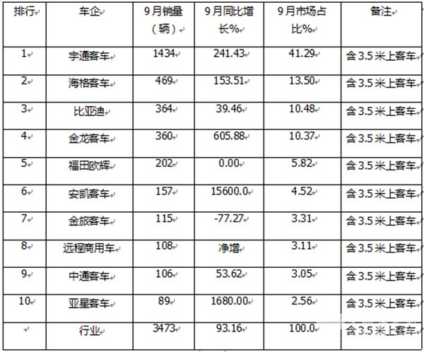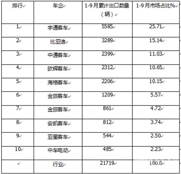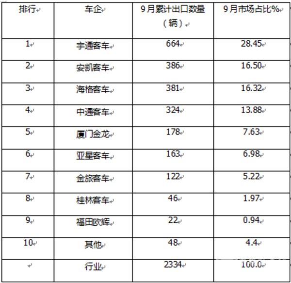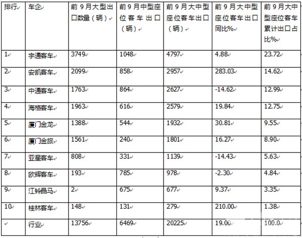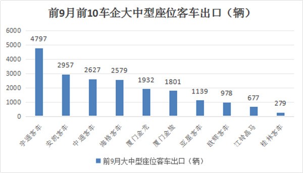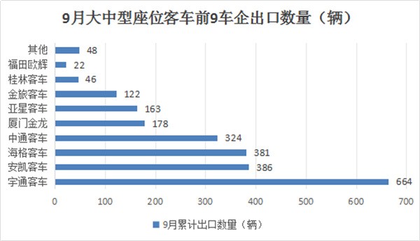 三、9月大中型座位客车出口:宇通夺冠,欧辉\海格分列二三