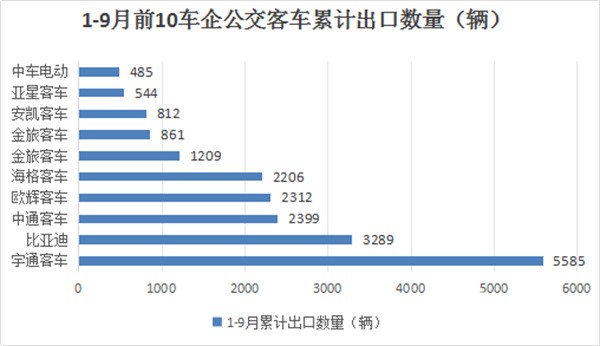 二、1-9月公交出口:宇通\比亚迪\中通居前三