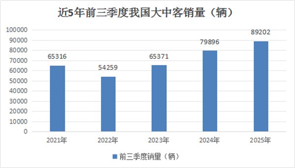 上图可见,2025年前三季度我国大中客销量89202辆,创近5年同期最高,因此成为今年前三季度我国大中客市场的一个显著特点。
