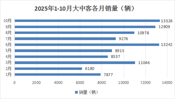 根据中国客车统计信息网数据,2025年1-10月各月我国大中型客车销量统计: