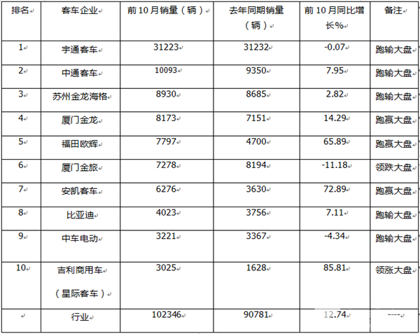 - 10月大中客车:宇通霸榜 中车杀入前三 欧辉“双领涨”