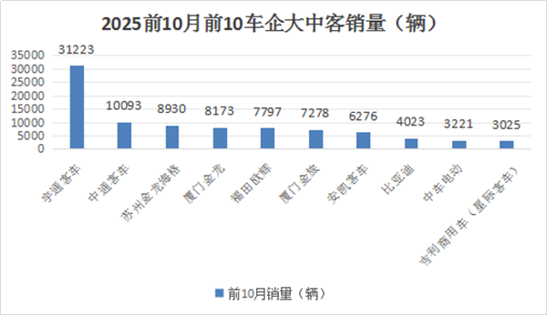 表2,根据中国客车统计信息网数据,2025年1-10月6米以上客车top10累计销量排行: