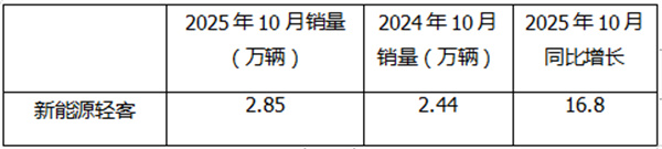 表1,2025年10月新能源轻客同比增长16.8%(数据来源:终端上牌信息)