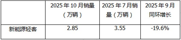 根据国家统计局数据,2025年10月我国制造业PMI指数为49.0%,环比上月的49.8%下降0.8个百分点,可见今年10月国内市场景气度环比明显变差,导致今年10月各行业对新能源轻客的需求动力减弱。