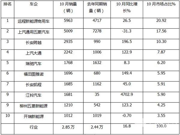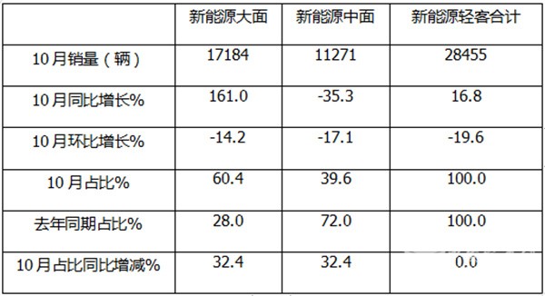 10月新能源轻客:销2.85万辆同比增环比降,大面主体地位飙升
