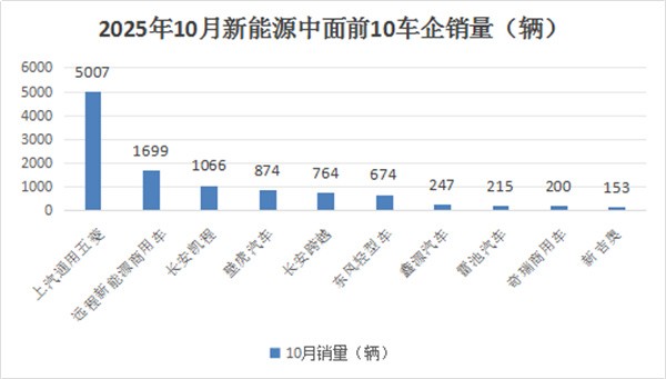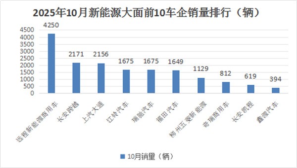 上图表显示,在2025年10月新能源轻客销量中: