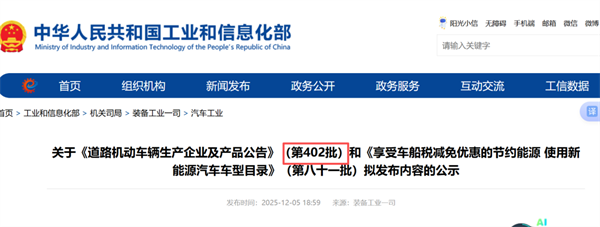 2025年12月5日,工信部发布关于《道路机动车辆生产企业及产品公告》(第401批公告,下也称”本批次公告”),这是2025年以来工信部发布的第12个批次的新车产品公告,也是2025年的最后一批汽车新品公告。