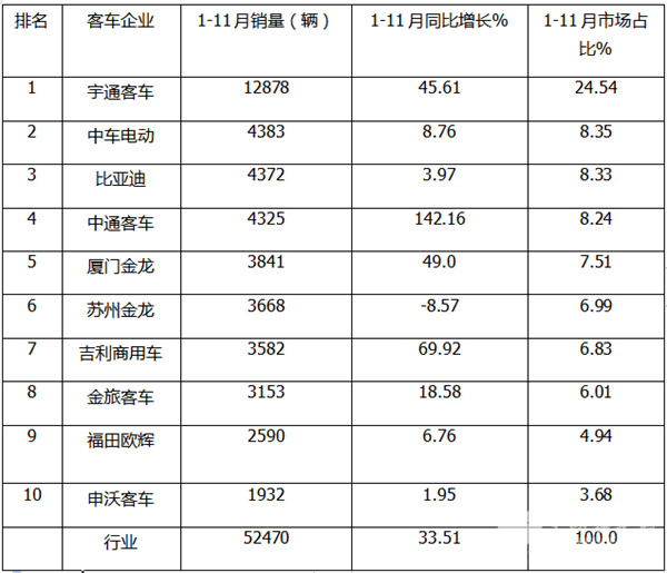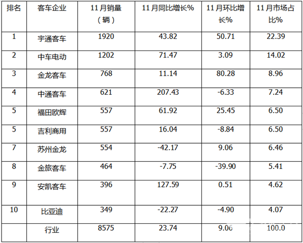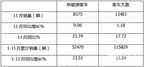 那么,作为接近年底的11月,我国大中型新能源客车市场表现如何?