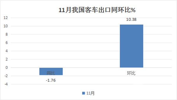 正是上述两个因素的叠加作用,导致今年11月我国客车出口销量出现了同比小降、环比增长1成的发展态势。
