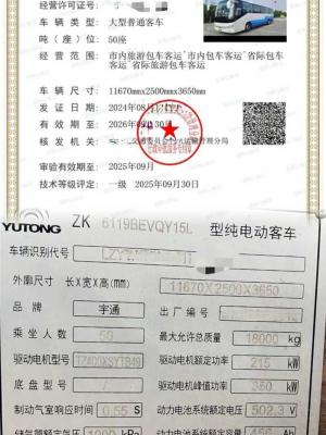 多台北方配50座宇通229度营运版电车 2021年9月上牌宇通6119,宁德时代电池,229度电池加热,带原厂锅炉,暖气,木纹地板,皮质座椅,行李架。公路客运性质,可提营运,公里数不多,喜欢的来。 本公司接受客车置换(国三国四国五,非营运,旅游客运,公路客运,公交客运都可以)。我们有着丰富的外迁内地城市经验。也可做正规出口手续。我们在广东省珠三角区域(深圳、广州、珠海、佛山、东莞、惠州)从事二手车数十年,全部是薄利多销的价格出售,不管是单台还是批量•均享受最诚信的合作态度。也可以根据您需要的指定车型来优选匹配,柴油.油电混合、新能源纯电动均可在珠三角区域看到现车,各种品牌都有,油车,新能源电车,油电混合,天然气客车等,可安排师傅代驾送车,或者物流配送发往全国。我们的宗旨:不但销售的车型丰富多元化,服务更是全方位:可视频看车定车,可代驾送车。另外本公司常年收购2座-55座客车,中巴、大巴都可以操作。 公司地址:1、深圳市南山区西丽街道曙光社区云家供应链有限公司宿舍101车友汇鑫汽车贸易有限公司 2、深圳罗湖区宝岗路1号淘车吧