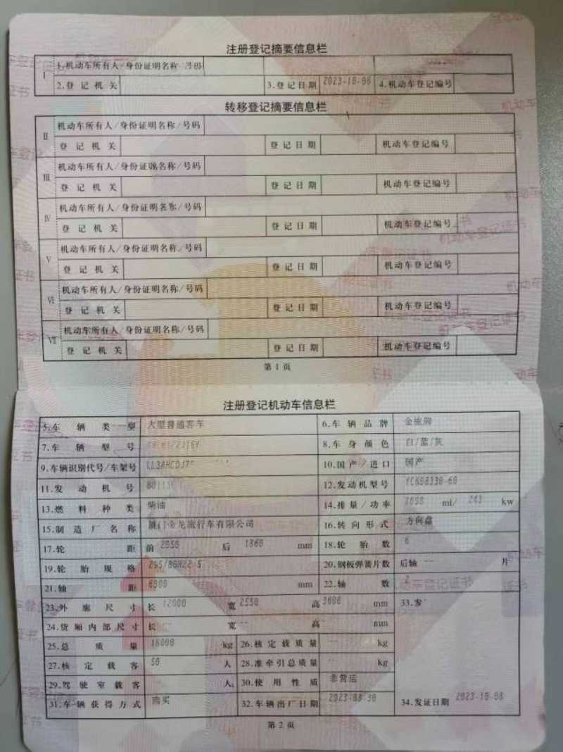 | 客车品牌 | 金旅客车 | 上牌时间 | 2023-10-19 |
