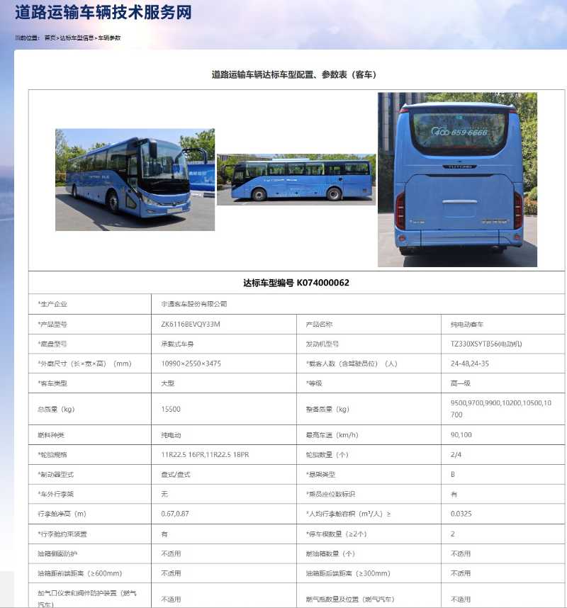 2024年12月上牌有公告48座宇通6116营运版大电量电车