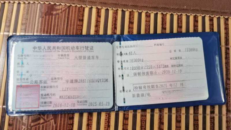 | 客车品牌 | 宇通客车 | 上牌时间 | 2024-12-10 |