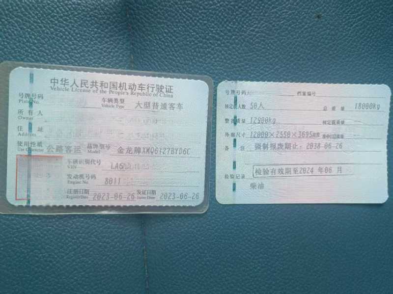 | 客车品牌 | 金龙客车 | 上牌时间 | 2023-06-22 |