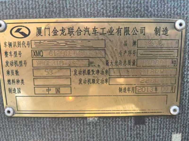 2013年10月上牌国四非营运53座大金龙6120中门车