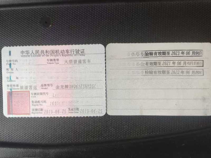 | 客车品牌 | 金龙客车 | 上牌时间 | 2019-06-19 |