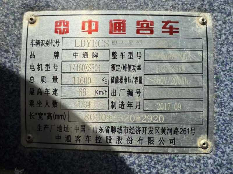 | 客车品牌 | 中通客车 | 上牌时间 | 2017-11-22 |