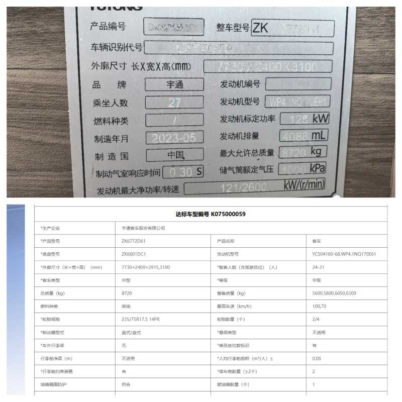 | 客车品牌 | 宇通客车 | 上牌时间 | 2023-05-17 |