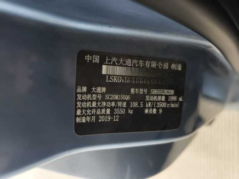 | 客车品牌 | 上汽大通 | 上牌时间 | 2020-01-07 |