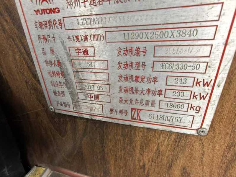 | 客车品牌 | 宇通客车 | 上牌时间 | 2016-07-28 |