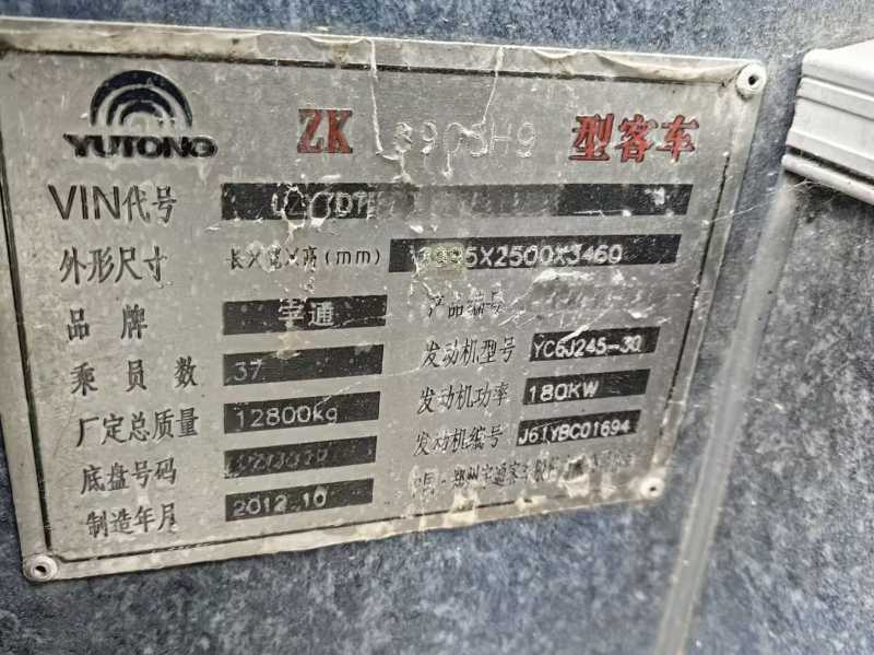 | 客车品牌 | 宇通客车 | 上牌时间 | 2013-01-16 |