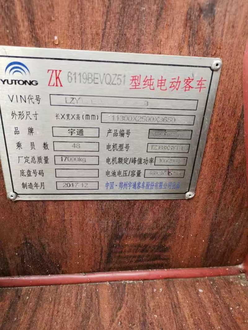 客车品牌 宇通客车 上牌时间 2017-12-20