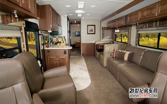 Winnebago Via——市场上燃油利用率最高的房车也在展会上亮相。该款自行式A型房车每加仑燃油大约可行进15英里。2010款全新Via供有卓越的操作、机动性能,并且会留下最小的停靠印迹。