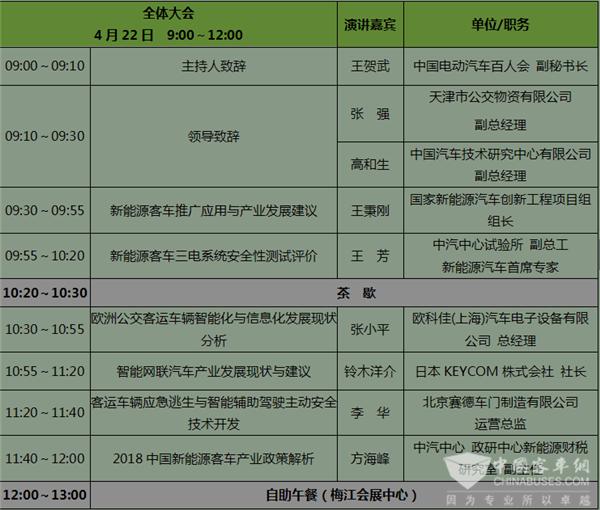 CTIB国际客运交通装备与技术展览会已经成功举办数届,一直被冠以“客车行业春天的风向标”的美称,作为客车行业年度重大行业活动,一直备受各整车及相关零部件企业的高度重视。依托CTIB国际客运交通装备与技术展览会平台,由国际客运交通与技术展览会组委会主办、中国汽车技术研究中心有限公司、天津市公交物资有限公司支持的“2018中国新能源客车发展与安全高峰会议”与新能源汽车国家大数据联盟、领想(上海)汽车科技有限公司支持的“新能源汽车动力电池溯源系统与全生命周期管理利用研讨会”同期会议将于4月21-22日在天津梅江会展中心N3厅如期举办,届时将邀请行业专家及企业领导、主流公交客车单位、公交客车核心零部件企业、科研院所等参会,共商新能源客车产业发展大计。