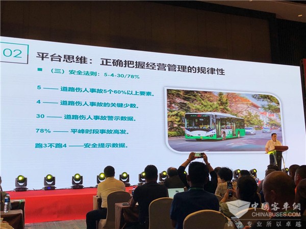 下午,公交大讲堂正式开课。协会、专家、媒体,以及来自55个城市的62家城市公交企业领导共聚一堂,共同探讨城市公交发展大课题。青岛公交集团总经理王玲先生首先与大家分享了“数据平台衍生平台思维”的相关课题,将青岛公交十几年运营积累的宝贵数据,经过分析推理,形成有序的、结构性的数据平台思维,归纳出新的经营理念,进一步指导实际运营工作。特别是王玲先生提出的“5-4-30/78%”的安全法则,比如绝大多数的安全事故是由4%的少数驾驶员造 成的,平峰时段的事故率占到总量的78%等等,让所有在座嘉宾受益颇深。