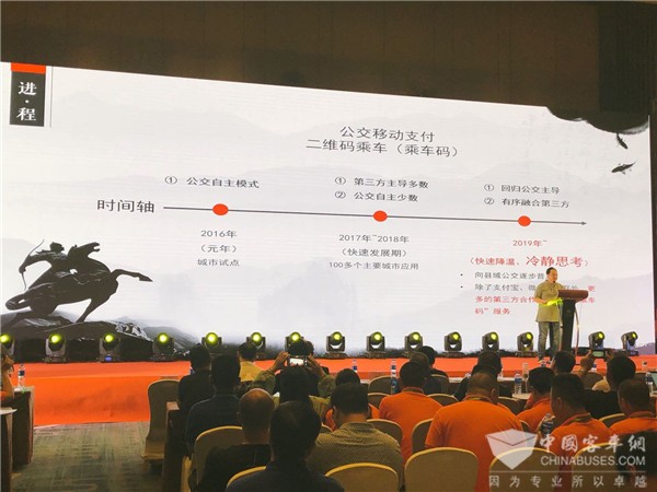 接下来,来自浙江大学的张晓天教授在其“浅探公交移动支付之发展模式”的主题演讲中,分析了我国公交移动支付服务普及过程中的现状,提出了“标准、资源、数据、码、应用”五位一体的循环关系模式。其后,麦克赛尔、国轩高科、宇通,以及吉客传动的企业代表也分别作了发言。