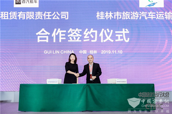 为促进桂林旅游出行行业全面提质增效,依托行业龙头企业资源优势,紧贴“共建、共商、共享、共荣”的新形势发展理念,由中国旅游车船协会秘书处牵头,首汽租赁有限公司市场营销中心总监杜佳芪与桂林市旅游汽车运输有限公司财务总监蒋智亮分别代表首汽租赁与桂林旅游运输公司,签署战略协议,双方将议共同开创桂林旅游汽车租赁新局面。