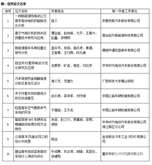 中国公路学会客车分会秘书长胡选儒宣布年度优秀论文名单