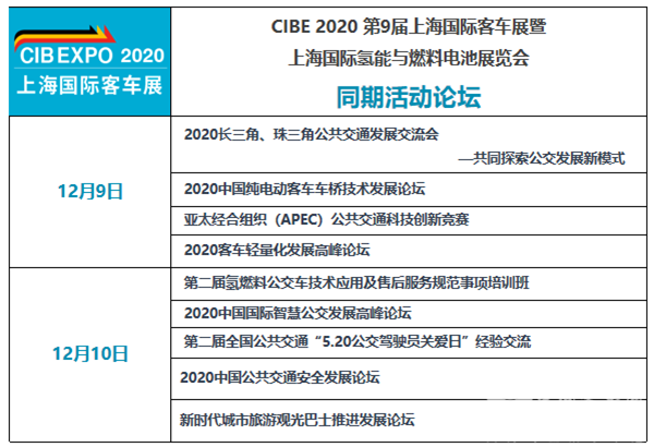 - CIBE 2020上海国际客车展暨上海国际氢能与燃料电池展览会12月9日强势来袭!