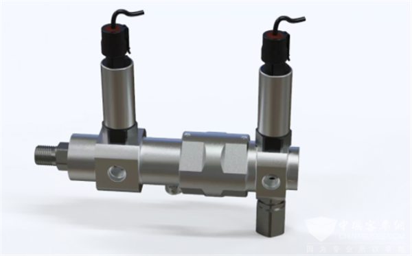 与此同时,基于氢安全管理策略及同轴多级减压技术,同步推出中国首款获得第三方权威认证的70MPa多功能集成减压阀组“岩竹”系列产品,稳定输出压力达到0.5MPa-2MPa,全寿命出口压力波动<±20%,相较于国际市场主流产品,减压比更宽、稳定性更高。目前,该产品已具备燃料电池汽车规模化配套能力。