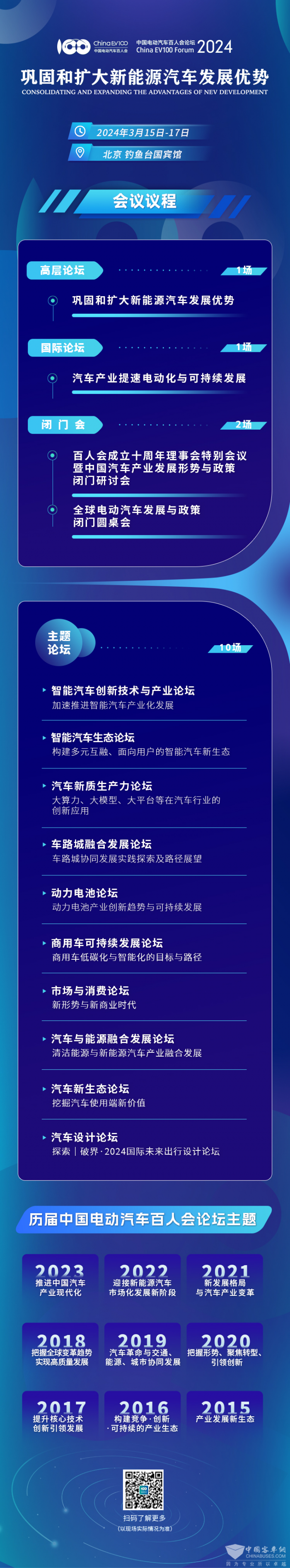 中国电动汽车百人会论坛(2024)将于3月15日在京召开