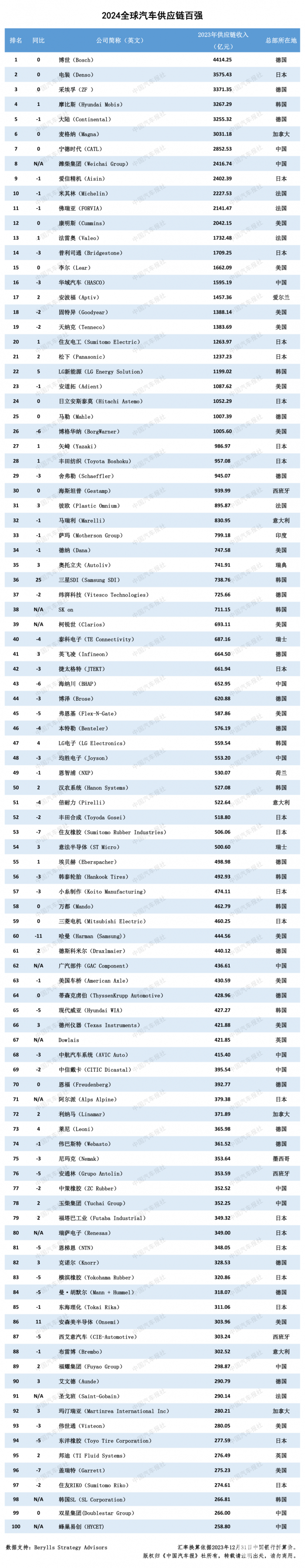 附:“2024中国汽车供应链百强”、“2024全球汽车供应链百强”