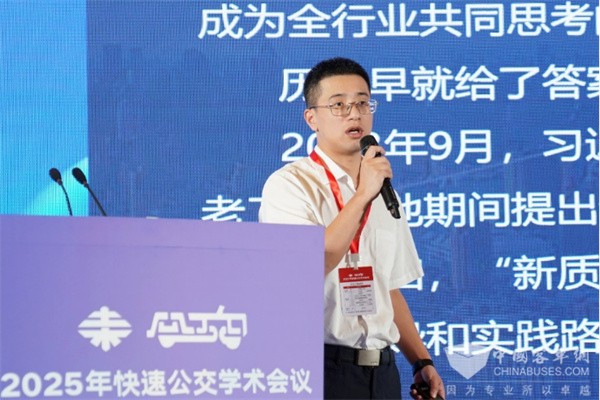 随后,相关公交企业和专家围绕“新质生产力引领快速公交转型发展”会议主题进行演讲。