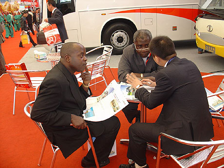 展会上,一位观展的外籍女士对这款车表现出了极大兴趣,她认为该款车型新颖流畅、充满动感,营造了愉快爽悦的观光心情,并表示要将该车型作为观光客车介绍至东南亚地区。