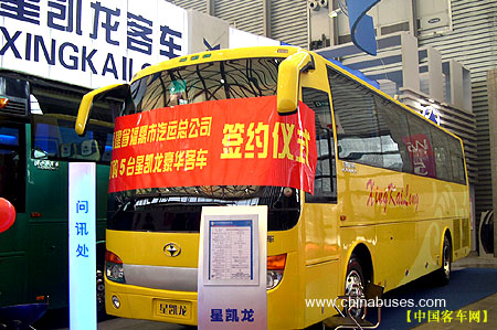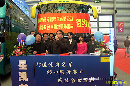 首次参加亚洲展会的安徽安凯车辆公司在本届展会表现不俗,继昨天和苏州青旅签定35台“星凯龙”豪华旅游客车定单今天又再次发力--与福建鼎市汽运总公司签定5台星凯龙豪华客车订购协议。鼎市汽运总公司负责人表示,之所以在展会现场选定安凯车辆的产品,是在对各同类产品进行综合比较的基础上,考察星凯龙产品拥有自身性价比的优势:安全可靠性高,油耗低,价格适中等,这些因素都是公司在选购产品时比较看重的。