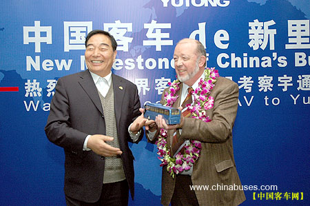 Vlieghe接受宇通副董事长路法尧先生赠送的宇通车模