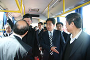 建设部科技委城市车辆专家委员会主任李世豪、北京公共交通控股(集团)有限公司董事长郑树森及各公交公司领导一起参观城市车辆展示会