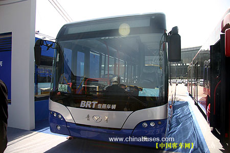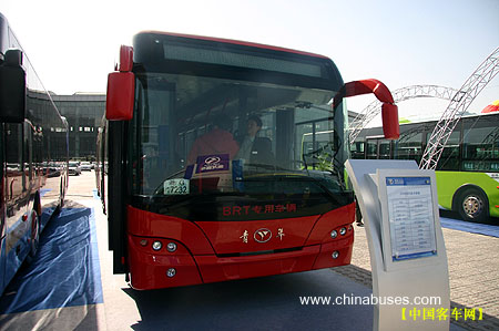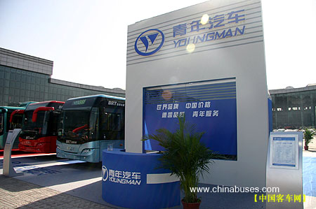 这次金华青年展示的主要是BRT系统适用车型。早些年,为了适应城市公交快速发展的需要,该公司引进德国尼奥普兰先进公交车型,采用大落差门式进口前后桥和发动机,开发了适合中国市场需求的新一代豪华城市公交车。以往在高档营运客车市场称霸的金华青年尼奥普兰更借此机会强势介入公交市场,延续了一贯的顶级客车路线,推出的"青年·城际线"BRT快速城市客车JNP6180G铰接公交和JNP6120G公交车都达到了国内豪华城市客车的极致,显示了其咄咄逼人的霸气。